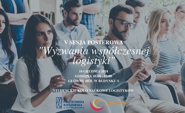 Zapraszamy na V sesję posterową „Wyzwania współczesnej logistyki”, która odbędzie się w dniu 18 grudnia 2018 r., w godzinach 10-13 w holu głównym budynku S.