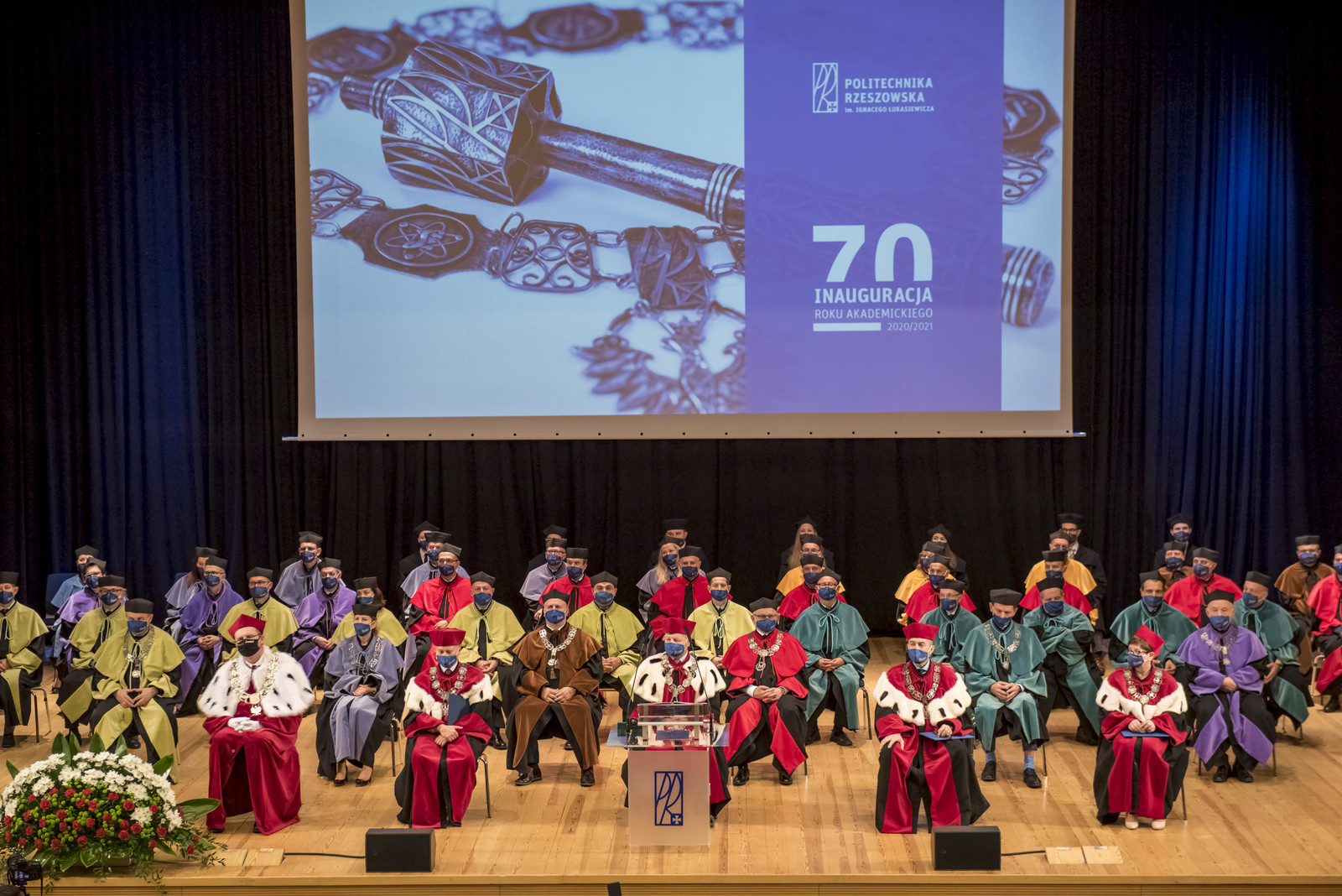Ze względu na sytuację epidemiczną uroczystość inaugurująca jubileuszowy 70. rok akademicki na naszej uczelni odbyła się w warunkach zaostrzonego reżimu sanitarnego z zachowaniem wszelkich środków ostrożności. Pracownicy, studenci i sympatycy naszej uczelni mogli w niej uczestniczyć w relacji na żywo transmitowanej na kanale YouTube, uczelnianym Facebooku i na antenie Akademickiego Radia i Telewizji Centrum.