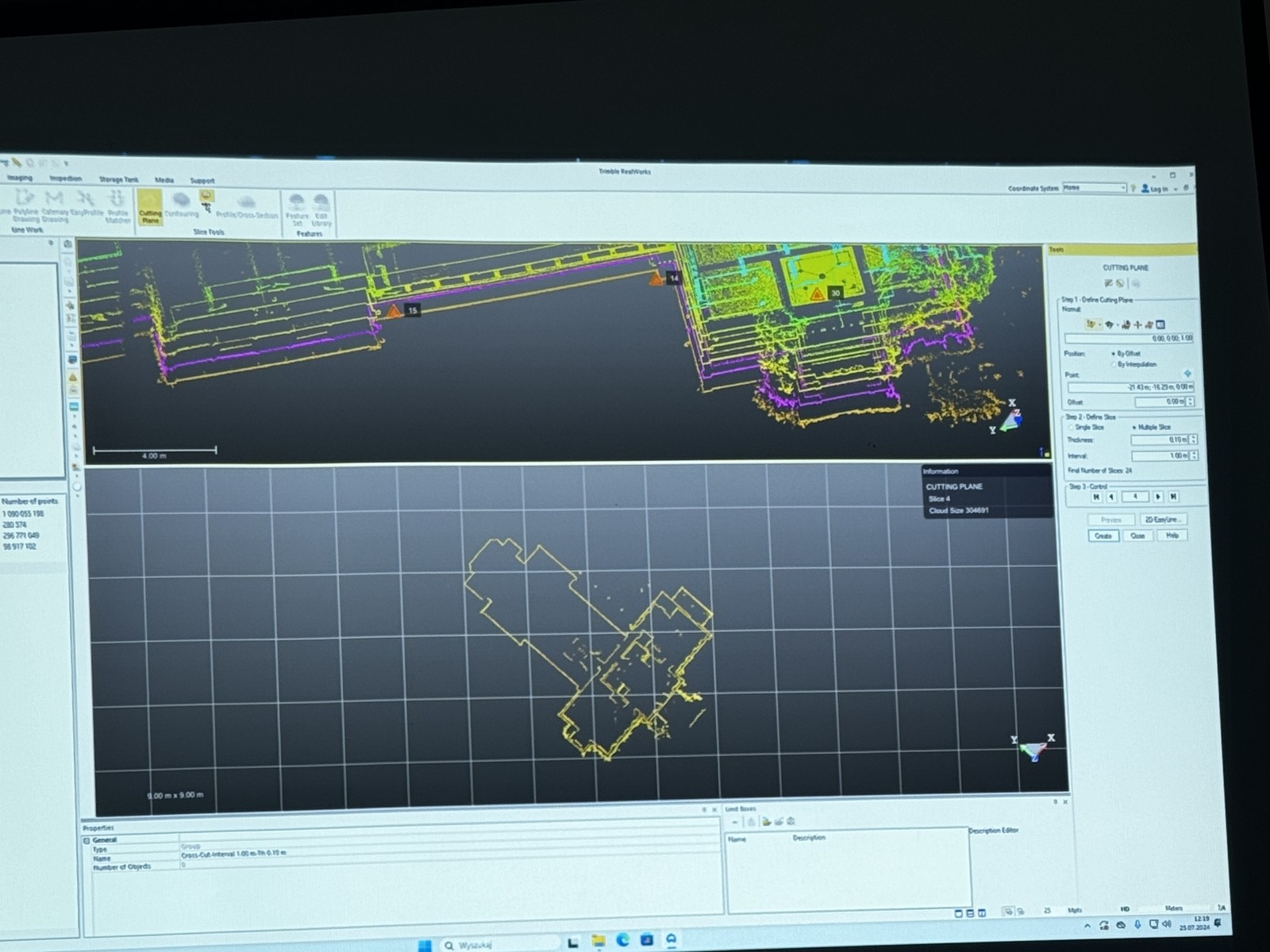 We wdrożeniu wzięli udział pracownicy PBGiTR w Rzeszowie oraz Politechniki Rzeszowskiej. Studentka kierunku geodezja i planowanie przestrzenne Magdalena Kuzdak w ramach praktyk i udziału we wdrożeniu wykonała pomiary terenowe oraz prace kameralne do swojej pracy inżynierskiej. Wdrożenie zostanie przeprowadzone na terenie Pałacu Myśliwskiego w Julinie. W ramach przeprowadzonej inwentaryzacji pozyskano m.in. precyzyjne georeferencyjne chmury punktów oraz zdjęcia lotnicze i naziemne. Na ich podstawie został opracowany realistyczny trójwymiarowy model obiektu możliwy do wykorzystania przez Muzeum-Zamek w Łańcucie, m.in. na potrzeby ochrony zabytków i promocji. W ramach prac powstały również profesjonalne rzuty poziome i pionowe budynków, przekroje oraz zestawienia powierzchni pomieszczeń i elewacji.