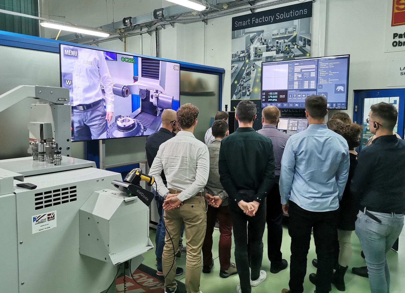 • pokazy automatycznego przesyłu danych narzędziowych bezpośrednio do obrabiarek CNC stanowiące integralny element zajęć demonstracyjnych i były realizowane z wykorzystaniem nowo wdrożonego w katedrze rozwiązania ZOLLER zidCode – przykłady przeprowadzono z zastosowaniem kodów QR, dedykowanego czytnika QR i systemu RunMyVirtualMachine, demonstrując praktyczne możliwości cyfrowej integracji systemów pomiarowych z procesami przygotowania i realizacji produkcji.